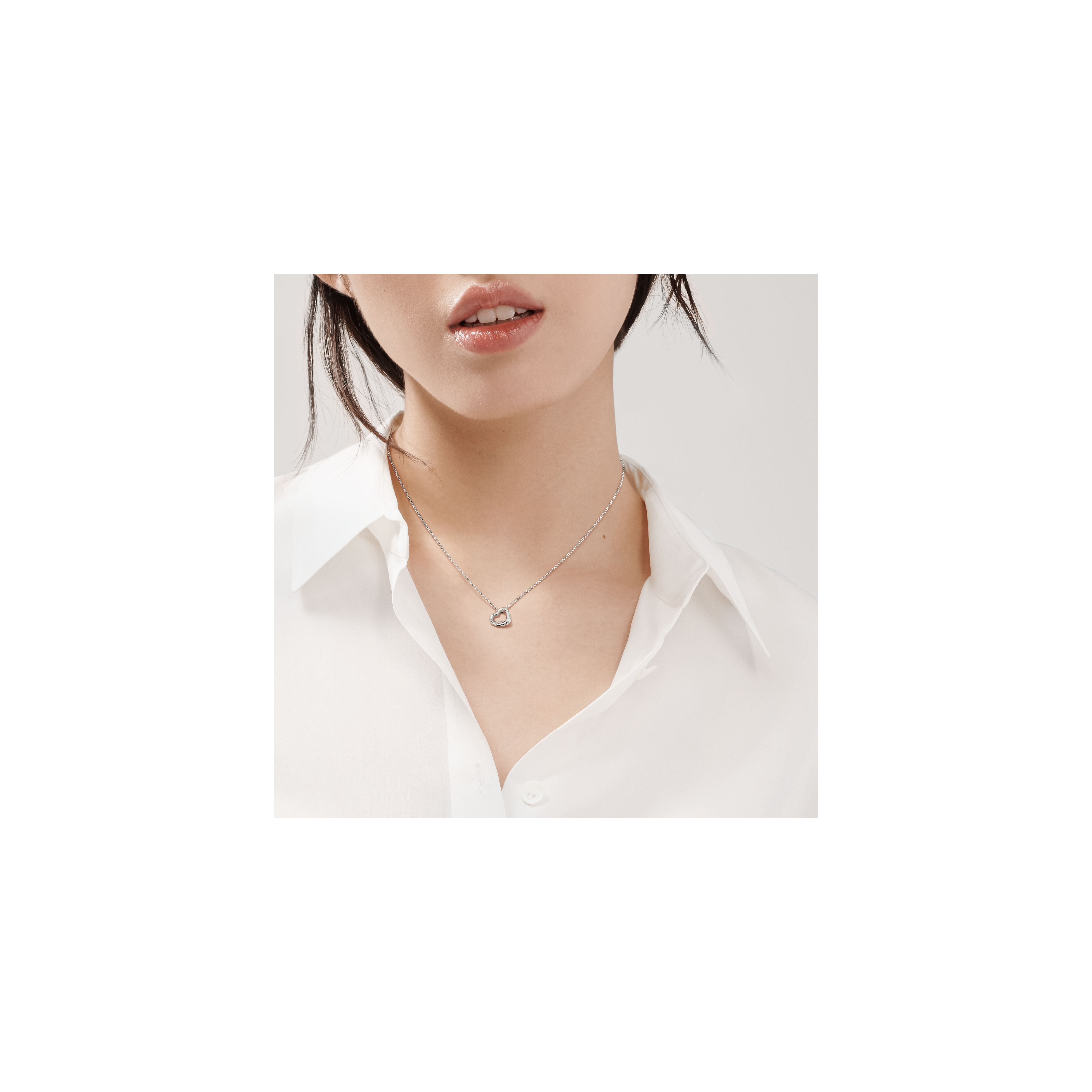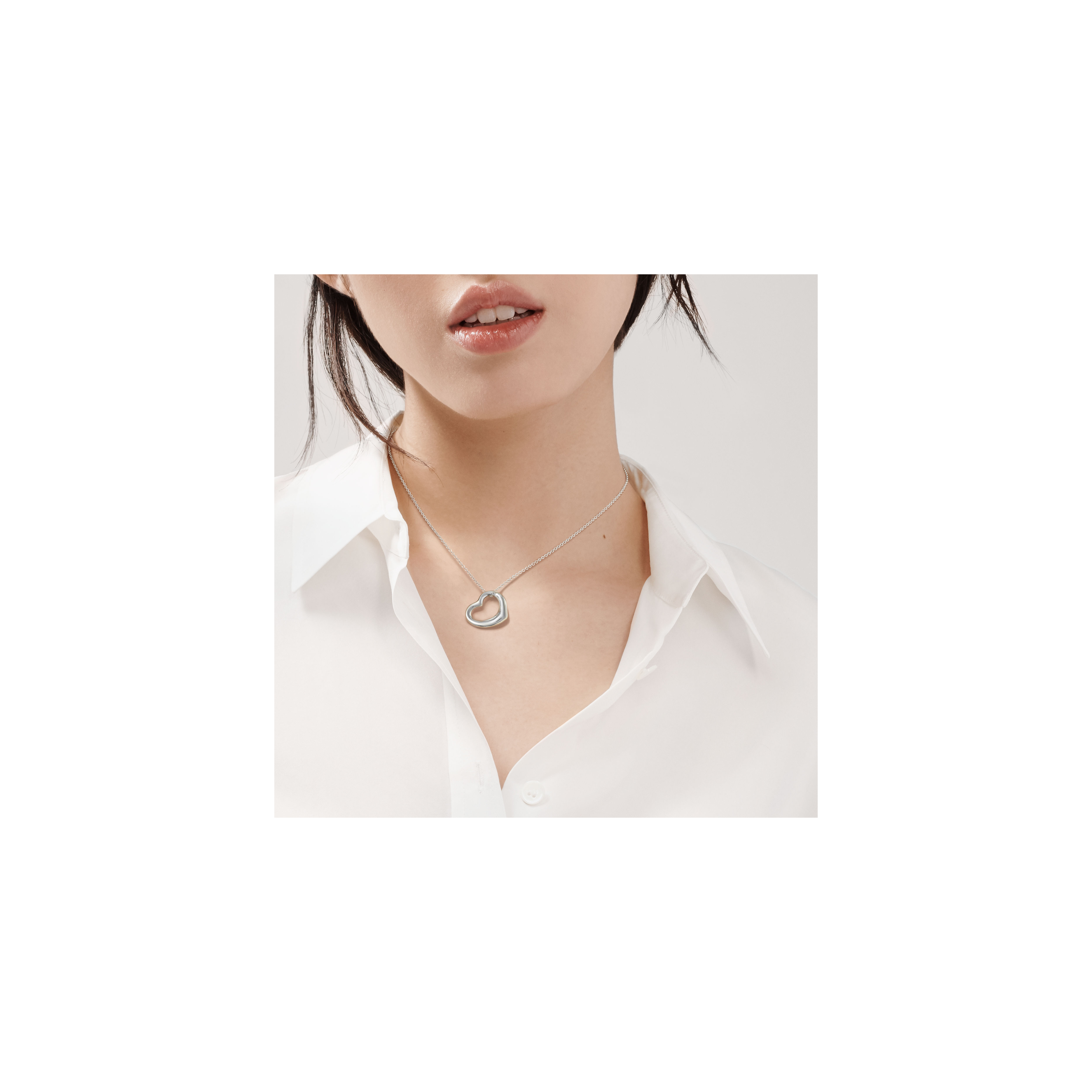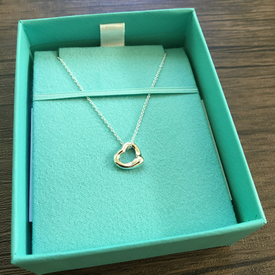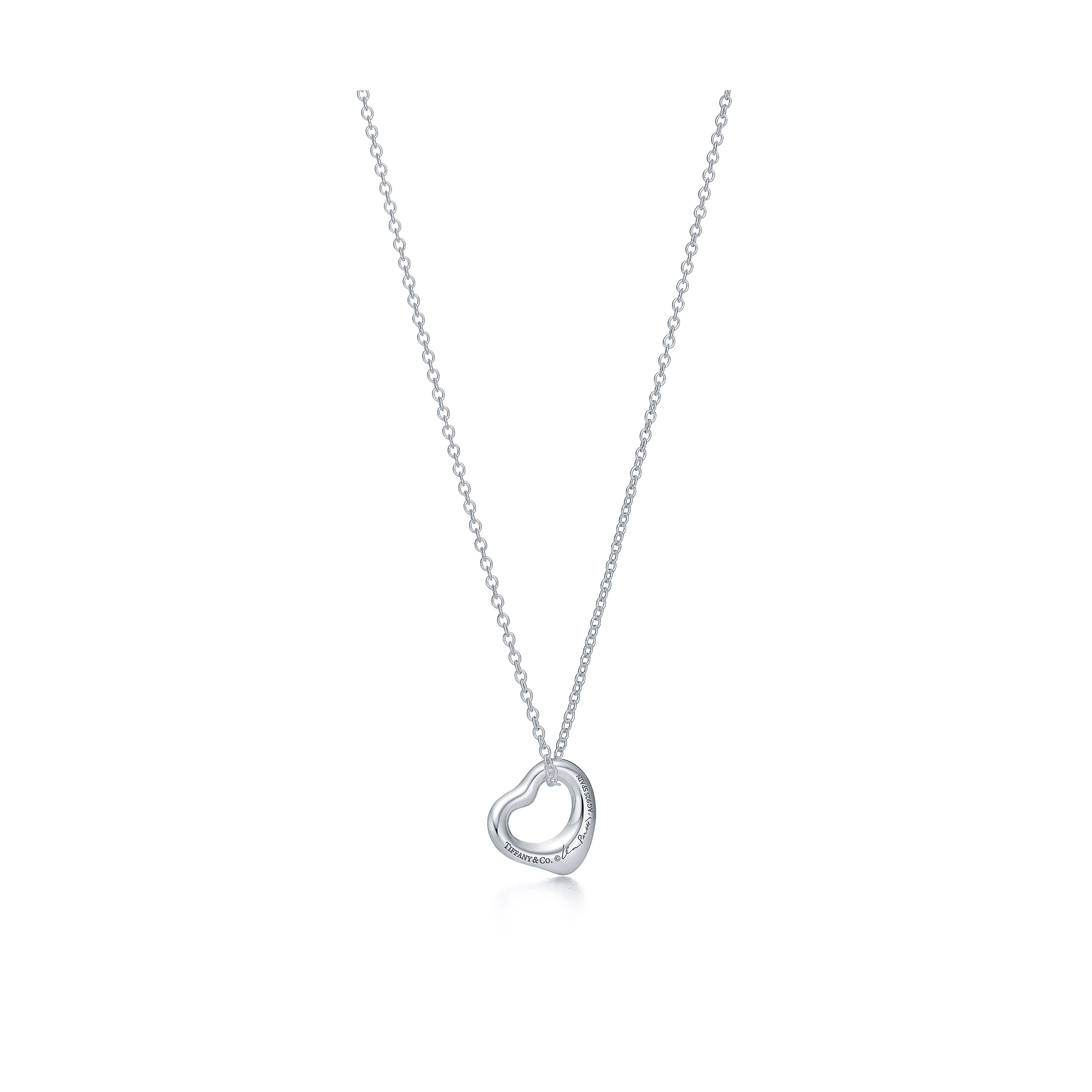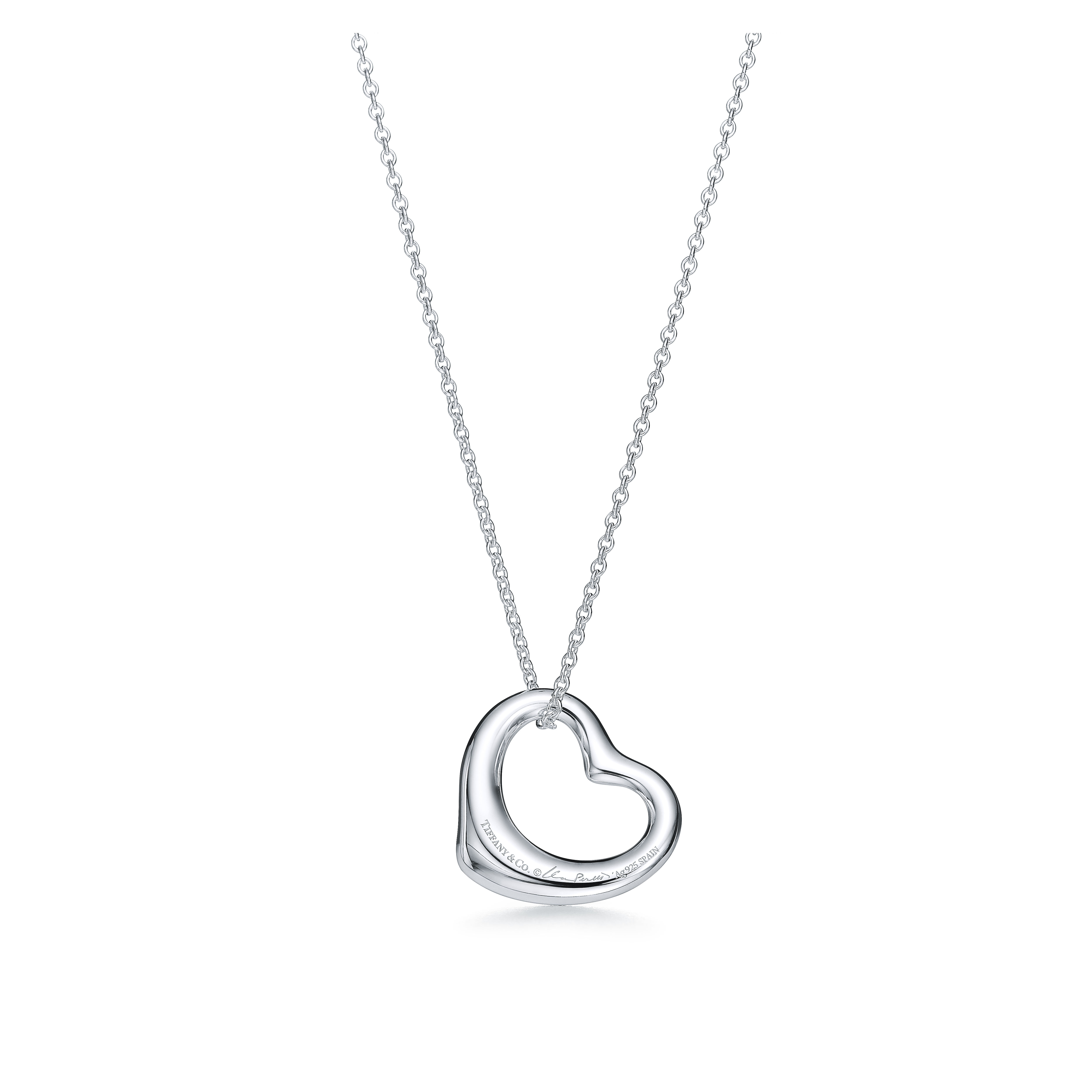 エルサ・ペレッティがデザインしたオープン ハート ペンダントミディアム。ハートの大きさ 22mm。スターリングシルバー。チェーンの長さ 約41cm。Original designs copyrighted by Elsa Peretti.