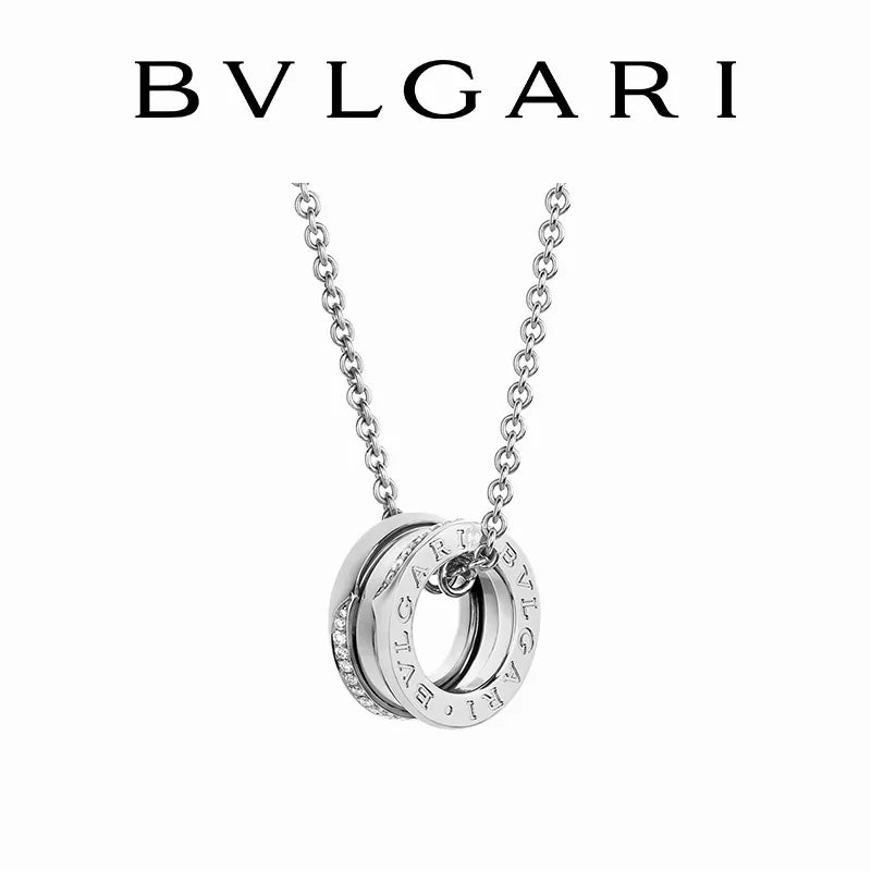 18Kホワイトゴールド製ビー・ゼロワン ネックレス。世界でもっとも有名な円形競技場コロッセオからインスピレーションを得て、ブルガリの創造的ビジョンのこれまでにない画期的な表現を生み出します。 未来を祝福するために誕生したこの大胆なペンダントヘッドには、エッジにデミパヴェダイヤモンドがあしらわれ、その独特のスパイラルが新たな始まりの力を象徴します。